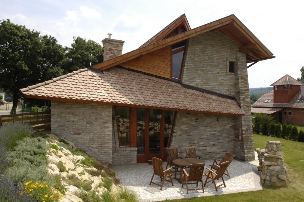 A ház tömegformálásában az egyszerűségre törekedve, és a népi hagyományokra építve az oromfalas magyar parasztház arányaiból, formavilágából indul ki. Anyaghasználatában a bontott tégla, a hódfarkú cserép, a fa nyílászárók, a faszerkezetek, a terméskő, és az épületen kívül a föld, és a megtartott ?öregecske? fák a meghatározók. A ház térszervezésében, formavilágában, és anyaghasználatában egyaránt kíván meríteni a múlt hagyományaiból, rábízni magát a táj és környezet szervező erejére, valamint korunk megkerülhetetlen elvárásaihoz ? de nem múló divatjaihoz, trendjeihez, stílusaihoz - alkalmazkodni.